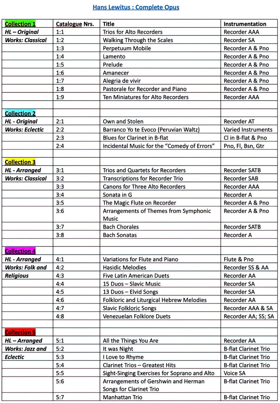 We are delighted to offer you the Hans Lewitus Complete Opus for download. This zip file includes all of Hans Lewitus' original compositions, as well as ensemble pieces arranged by him for recorder and various other instruments.